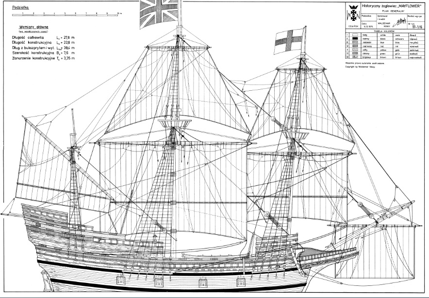 Чертёж модели Галеона Mayflower / Мейфлауэр (1620) №2 для сборки и историческая справка