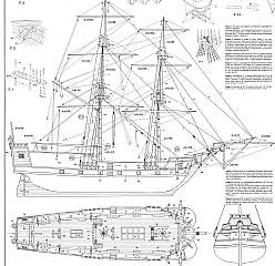 Чертёж модели Брига Голден Стар/ brig Golden Star (XVIII) для сборки и историческая справка