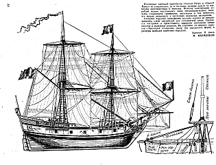 Чертёж модели Брига Беринг / brig Bering (1725) для сборки и историческая справка
