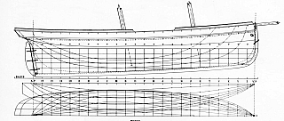 полный теоретический план (вид сбоку, сверху и шпангоуты),