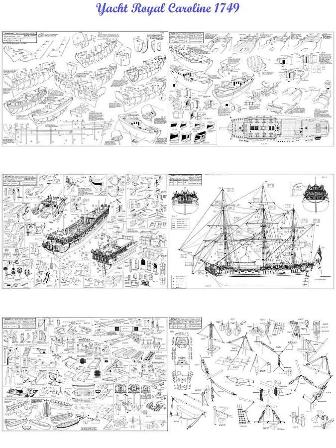 Чертёж модели Яхты Ройал Каролайн / Yacht HMY Royal Caroline (1749) для сборки и историческая справка