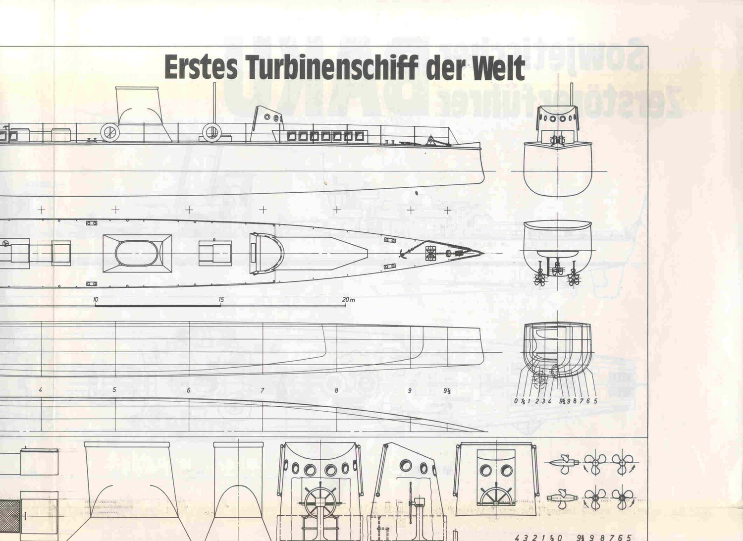 Чертёж модели Парового судна с турбинным двигателем Турбина / Turbine-engine steamer Turbina (1894) для сборки и историческая справка