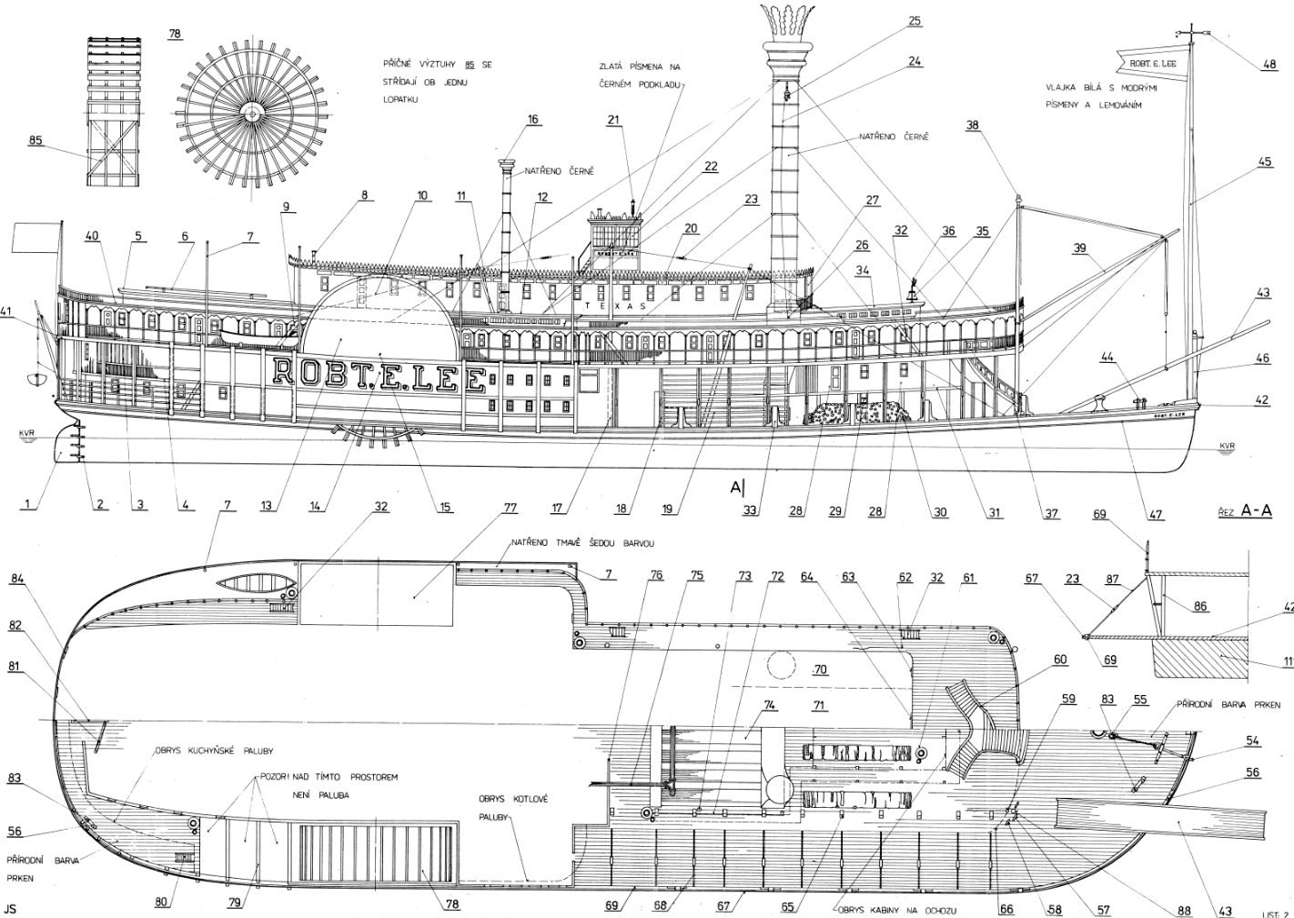 Чертёж модели Парохода с гребным колесом / Steamer Paddle River Robert Lee Mississippi для сборки и историческая справка