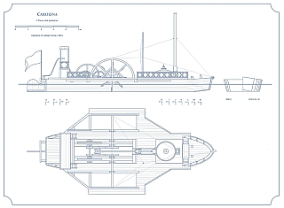 Чертёж модели Бококолёсного парохода Carolina / Side-wheel steamer CAROLINA (1820) для сборки и историческая справка