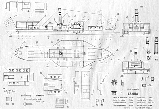 Чертёж модели Колёсного парохода Ланна / Side-wheel steamer Lanna (1889) для сборки и историческая справка