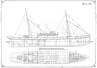 Чертёж модели Пароход-парусника (буйкатара) Ловенорн / Sailing-steamer buoy tender SS LOVENORN для сборки и историческая справка