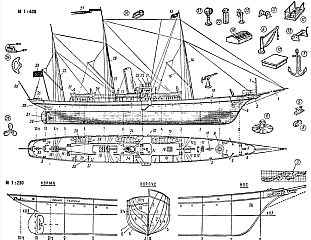 Чертёж модели Паро-парусной императорской яхты «Колхида / Sailing-steamer imperial yacht KOLKHIDA (1900) для сборки и историческая справка