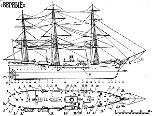 Чертёж модели Парусно парового Учебного судна Верный / training vessel Verniy (1895) для сборки и историческая справка