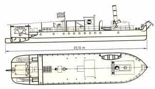 Лёгкая рубка и труба расположены ближе к носу.