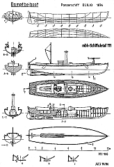 Чертёж модели Бронированной паровой лодки броненосца / armored steam launch from battleship DUILIO (1876)