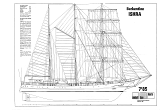 Чертёж модели Баркентины ОРП Искра / ORP Iskra (1982) для сборки и историческая справка