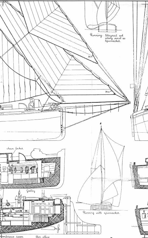 Чертёж модели Прибрежной грузовой парусной баржи / Barge Coasting Verona (1905) для сборки и историческая справка