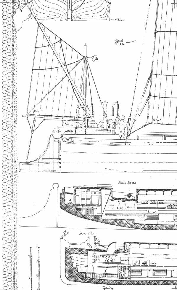 Судно оснащено гафельным вооружением, типичным для барж начала XX века: