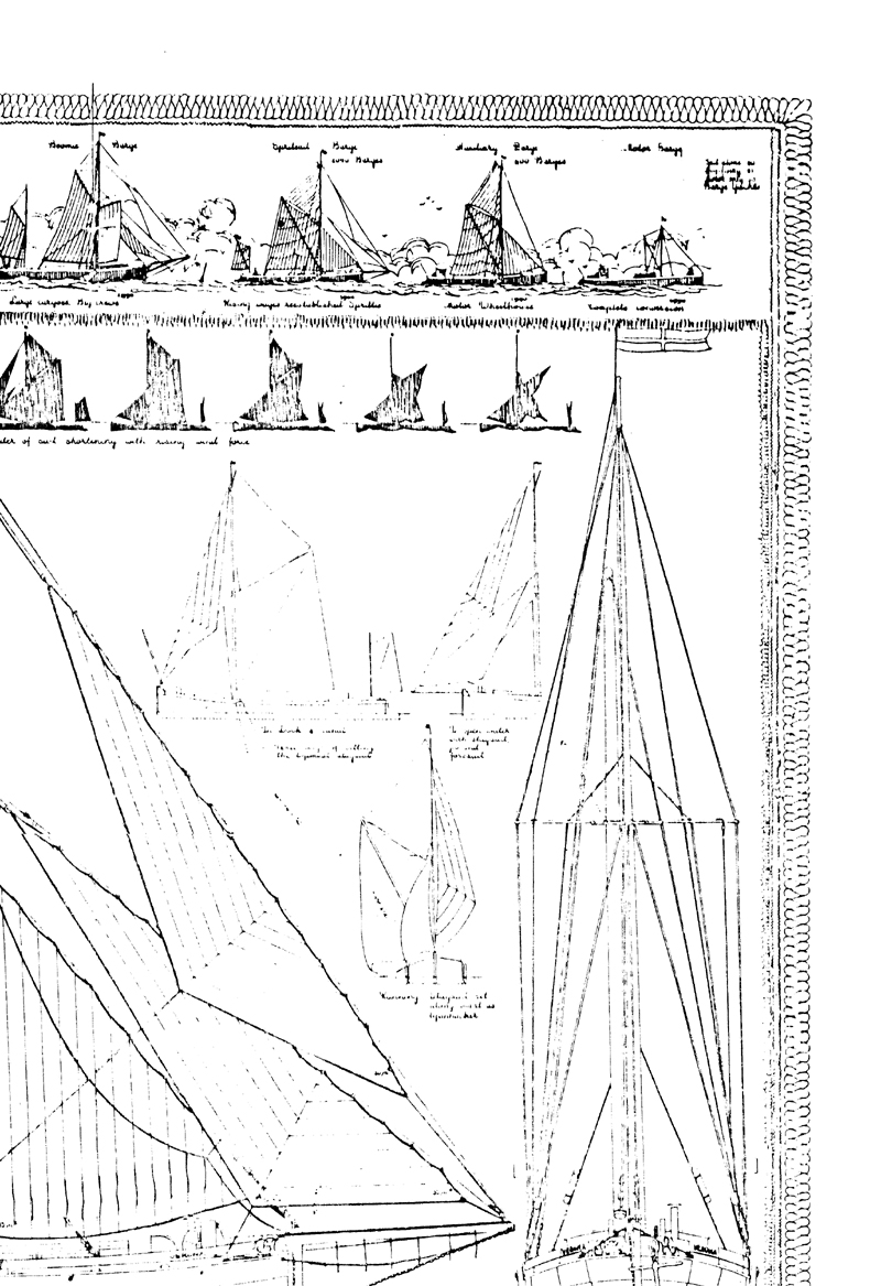 парусное вооружение типа spritsail rig — косой парус с выносным гафелем;