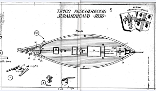 В середине XIX века прибрежные воды Южной Америки были густо заселены небольшими, но удивительно эффективными парусными судами — рыболовными ботами с двумя мачтами и простым, но надёжным оснащением. Одно из таких судов представлено в чертеже «Tipico Peschereccio Sudamericano – 1850», который стал основой для многочисленных реконструкций и моделей.