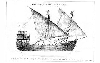 Рангоут усиленный, с большим количеством вант и штаг, что характерно для позднесредневековых средиземноморских судов.