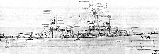 Чертёж модели Эскадренный миноносец / destroyer USS DD765 FRAM для сборки и историческая справка