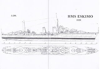 Чертёж модели Эсминца Эскимос / destroyer HMS ESKIMO для сборки и историческая справка