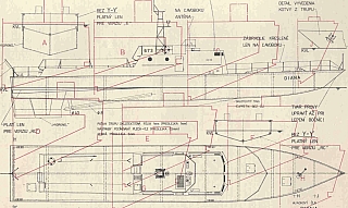 палуба ровная, с небольшим подъемом к носовой части.