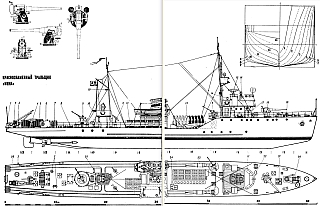 Чертёж модели Краснознаменного Тральщика Мина / Minesweeper Mina (194x) для сборки и историческая справка