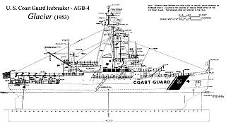 Чертёж модели Ледокола Береговой охраны США Глейшер / coastguard icebreaker USCG GLACIER для сборки и историческая справка