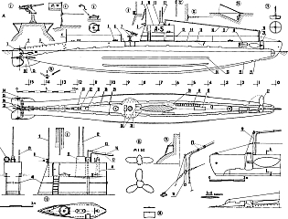 Чертёж модели Подводной лодки A5 / Submarine A5 (1917) для сборки и историческая справка