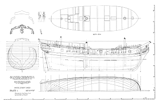 Чертёж модели Каперского шлюпа Оливер Кромвель / Sloop Privateer Oliver Cromwell (1777) для сборки и историческая справка