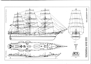 Чертёж модели Учебного барка Дар Поморжа / Training ship SSS Dar Pomorza (1909) для сборки и историческая справка