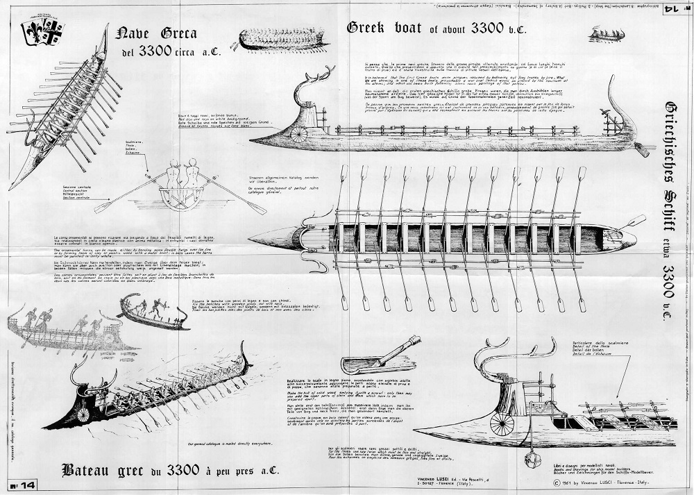 Представленный чертёж реконструирует один из самых ранних известных гребных военных кораблей Эгейского региона. Эта древнегреческая лодка, датируемая приблизительно 3300 годом до н. э., относится к переходному периоду, когда примитивные речные и прибрежные суда начали превращаться в более развитые боевые и транспортные корабли.