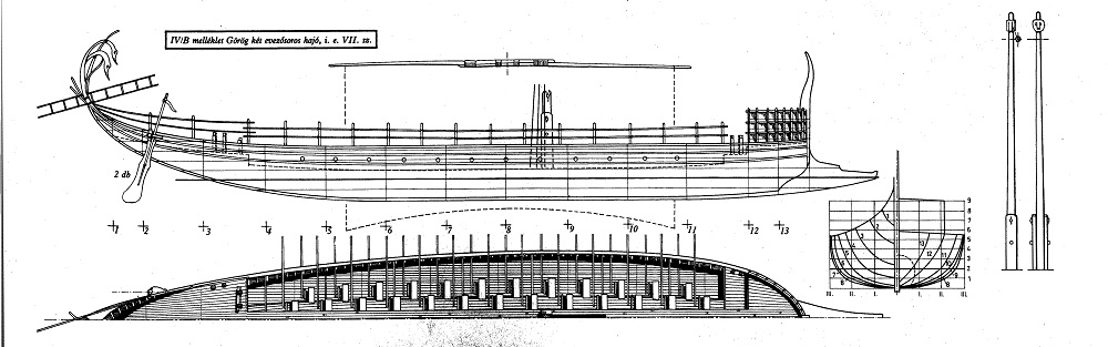 Чертёж модели Биремы Греческой / Bireme Greek (VII ст. до н.е.) для сборки и историческая справка