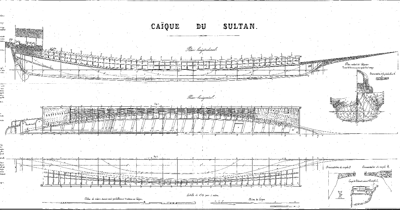 Чертёж модели Императорской каики Turkish Imperial Chaika / Ottoman Imperial Caique (1453) для сборки и историческая справка