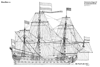 Хотя «Семь Провинций» относят к линейным кораблям 1-го ранга, в его силуэте легко угадываются традиции галеонов: