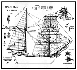 Чертёж модели Бриг-шхуны Febrero / Февраль (1827) для сборки и историческая справка