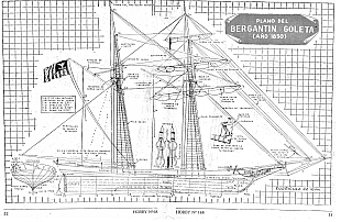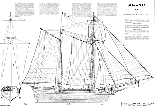 Чертёж модели Шхуны Marseille, Topsail schooner (1764) для сборки и историческая справка
