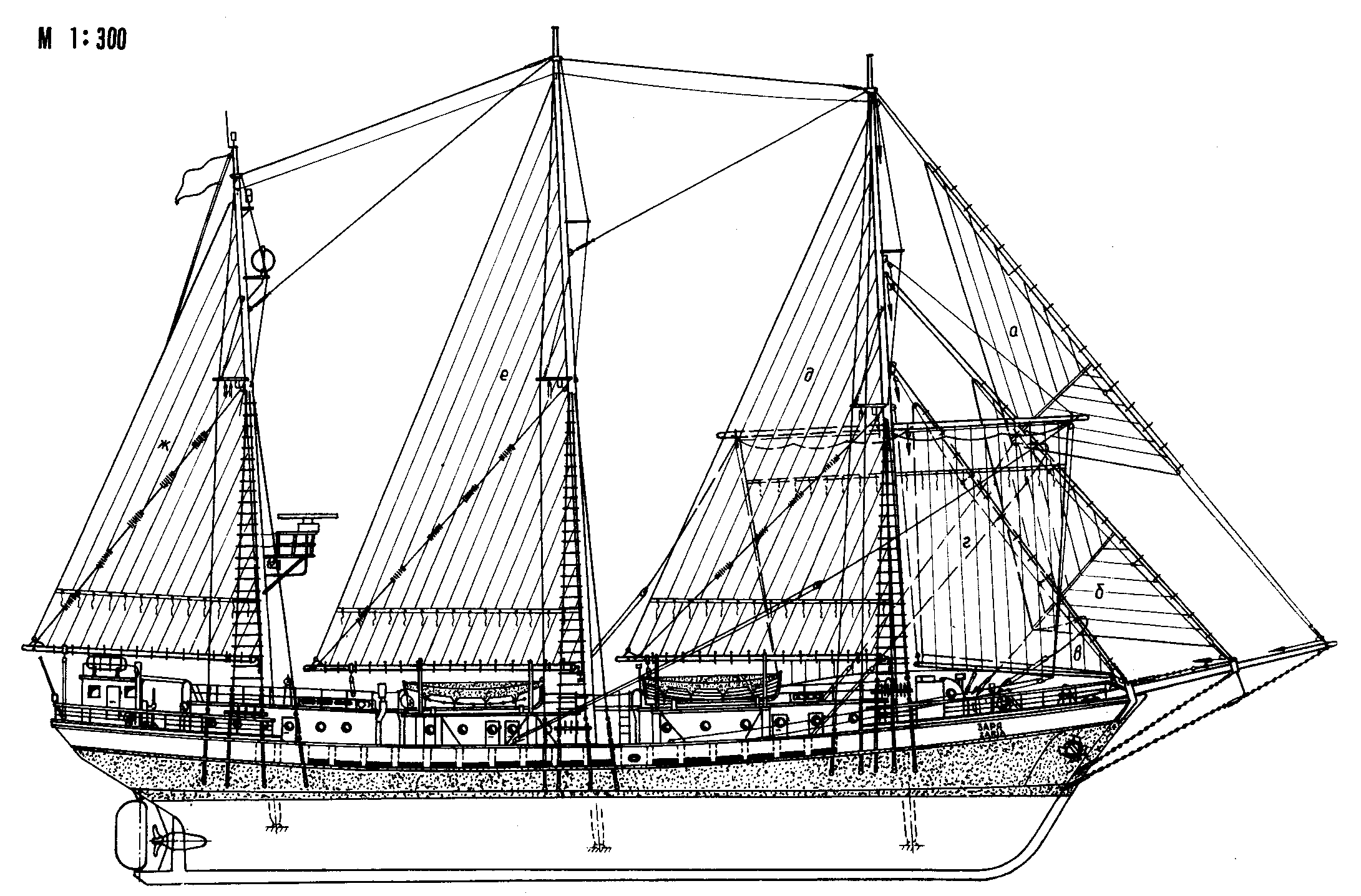 Чертёж модели Шхуны Заря / schooner Zarya (1952) для сборки и историческая справка