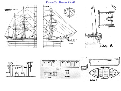 Чертёж модели Корвета Maria, Corvetta Mercantile / Мария (1750) для сборки и историческая справка