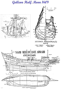 Чертёж модели Галеона Half Moon / Полумесяц (1609) для сборки и историческая справка