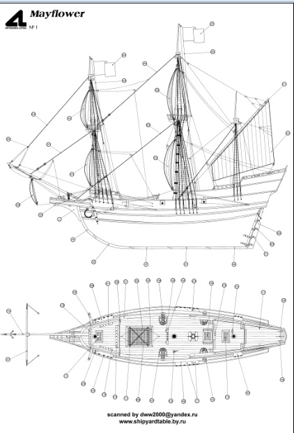 Чертёж модели Галеона Mayflower / Мейфлауэр (1620) №1 для сборки и историческая справка