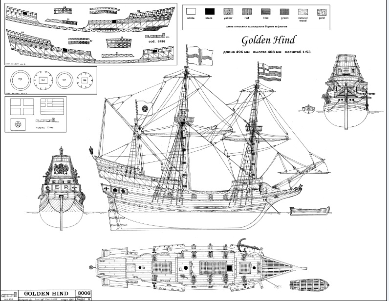 Чертёж модели Галеона «Золотая Лань» / Galleon Golden Hind (1577) №1 для сборки и историческая справка
