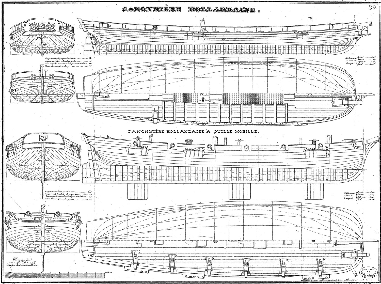 Чертёж модели канонерской лодки Canonniere Hollandaise / Голландская канонерская лодка (1831) для сборки и историческая справка