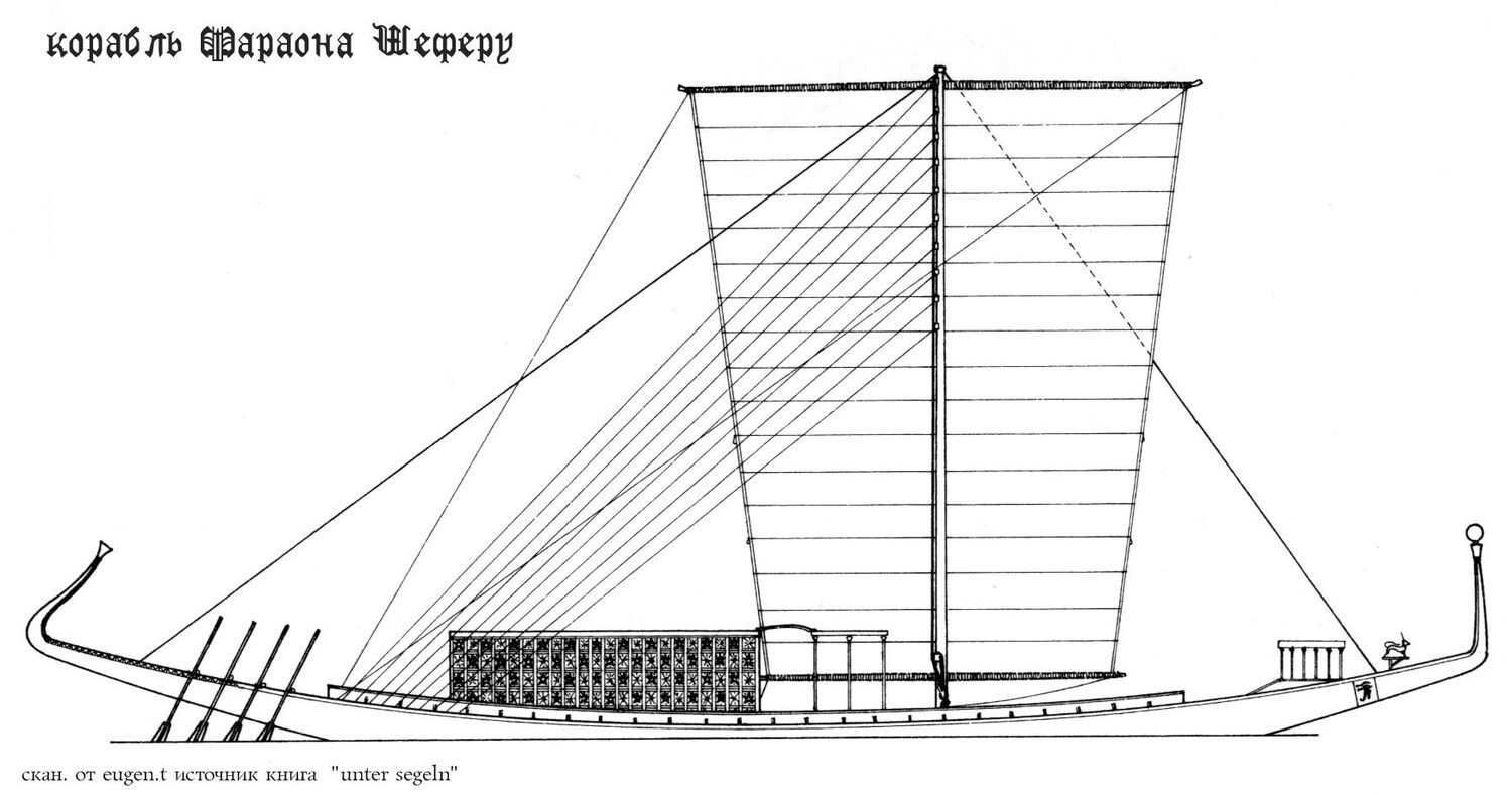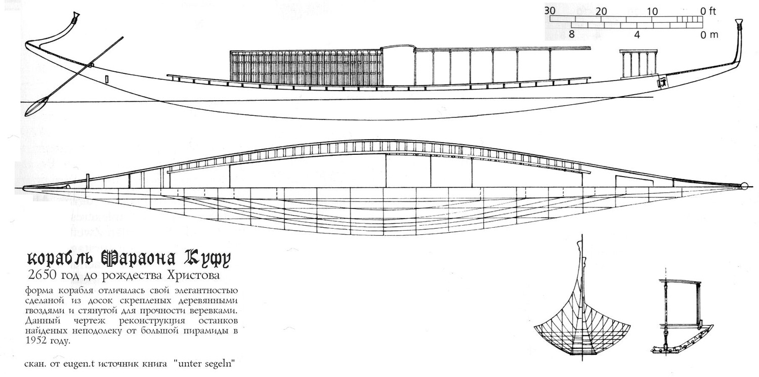 Это не отдельный корабль, а технические чертежи элементов кормы египетских судов: