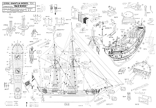 Чертёж модели Бомбардирского кетча „Рейсхорс“ / bomb ketch Racehorse (1757) для сборки и историческая справка