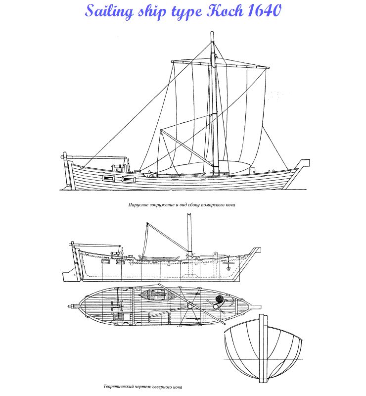 Чертёж модели Северный коч / KOCH sailing ship (1640) для сборки и историческая справка