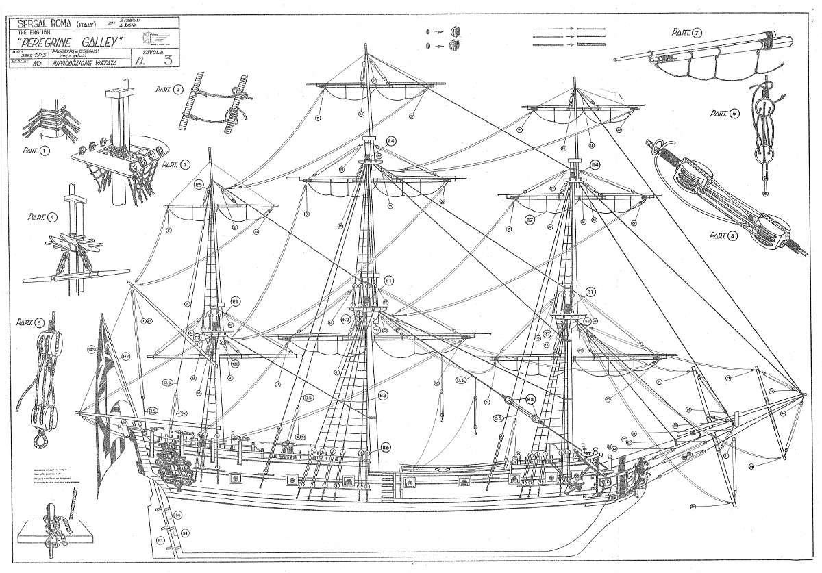 Чертёж модели галерного корабля Peregrine, Galley / Пилигрим-галера (1700) для сборки и историческая справка