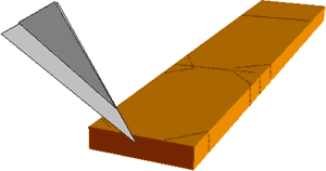1. В качестве материала для изготовления блоков используется покрытие, применяемое в мебельном производстве для облагораживания ДСП. Лет десять тому назад купил пачку таких обрезков в магазине <Умелые руки>. Оно с успехом может быть заменено ватманом или шпоном толщиной 0,15-0,25 мм. Ватман, для придания ему большей жесткости, предварительно тонируется морилкой или краской и пропитывается клеем ПВА или разведенным лаком для дерева . Затем отрезается полоска подготовленного материала по ширине, соответствующая ширине щек имитируемого блока. Срезаются уголки с одной стороны и будущая заготовка отрезается по длине щеки, а затем отрезаются уголки с другой стороны, таким образом блоку придается его форма (Рис.2).