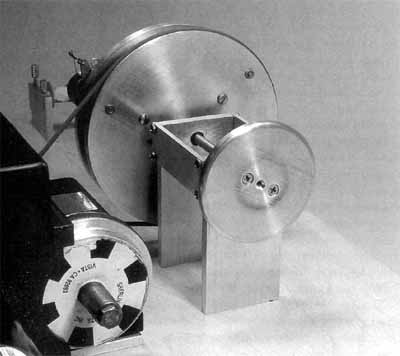 Головка составлена из двух 14-ти см дисков, сделанных из 6 мм алюминиевого листа. Один из дисков по краю имеет паз для приводного ремня. Нет ничего необычного в использовании алюминия для дисков. Можно было бы использовать фанеру, пластик или даже плотный картон, но они бы долго не прослужили. Везде используются бронзовые подшипники скольжения.