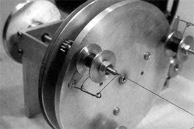 Ключевое передаточное число - между центральной шестерней и шпинделем. Размер промежуточных шестерен не имеет никакого значения, они только определяют диаметр дисков (головки). Передаточное число центральной шестерни на шпиндельные - 2:1. Изучая литературу, я думал что отношение 2,1:1 или 2,33:1 будет более правильным. Однако, после построения пяти прототипов, каждый с различным передаточным числом, я нашел, что отношение 2:1 самое правильное. Интересно заметить, что передаточное число 2:1 обеспечивает отношение 1:1 кручений нити к кручению троса. В то время как шпиндели поворачиваются дважды относительно головки, они поворачиваются только один раз относительно троса. Один оборот потерялся из-за орбитального движения шпинделей вокруг троса.