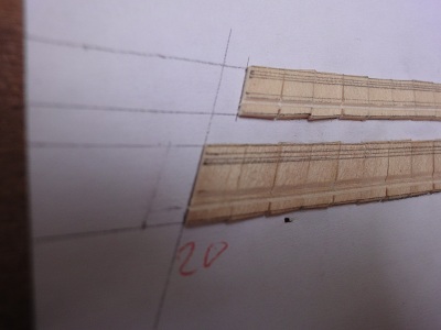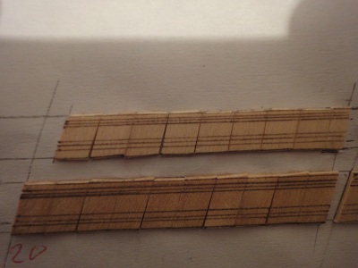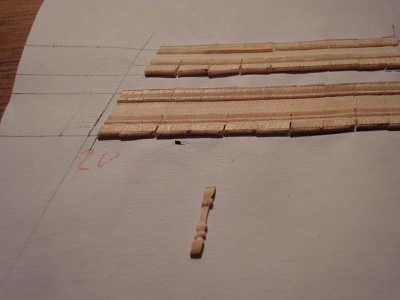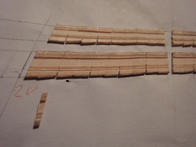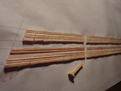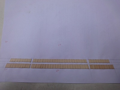 - Готовая "лента" будущих фальш пиллерсов. Как видно на фото, половина верхнего ряда была испорчена. Придётся подклеивать места скола.