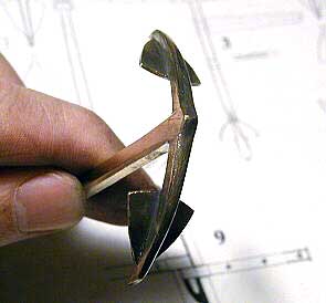 Остается только сделать из дерева шток, бугели штока и якорный рым. |