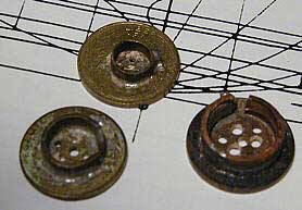 Образцы приспособлений для изготовления юферсов различных диаметров. Теперь, когда всё готово, можно начинать изготовление юферсов. Вначале из заготовки круглого сечения (материал лучше самшит, но подойдет и бук) нарезаем шайбы нужной высоты. |